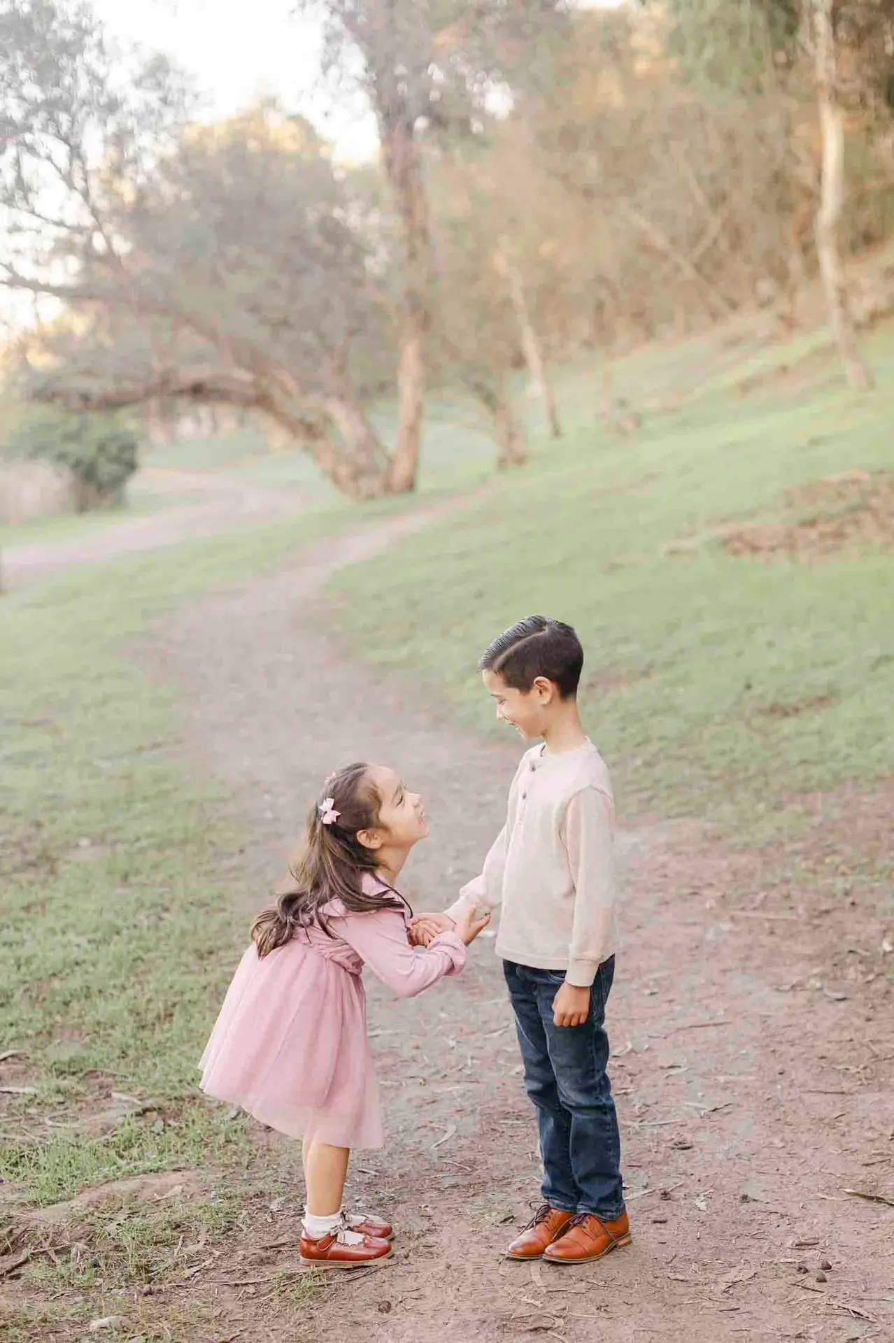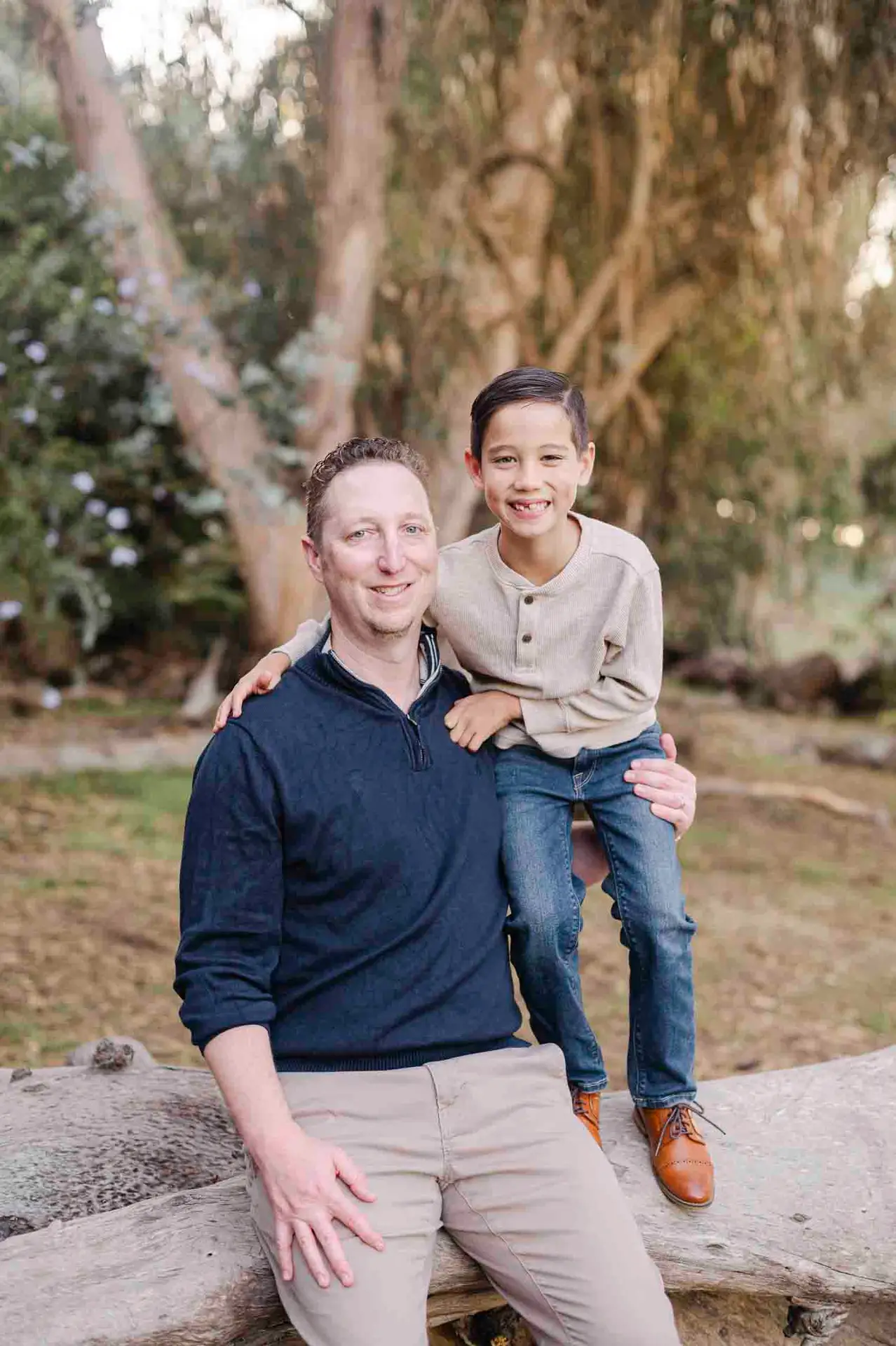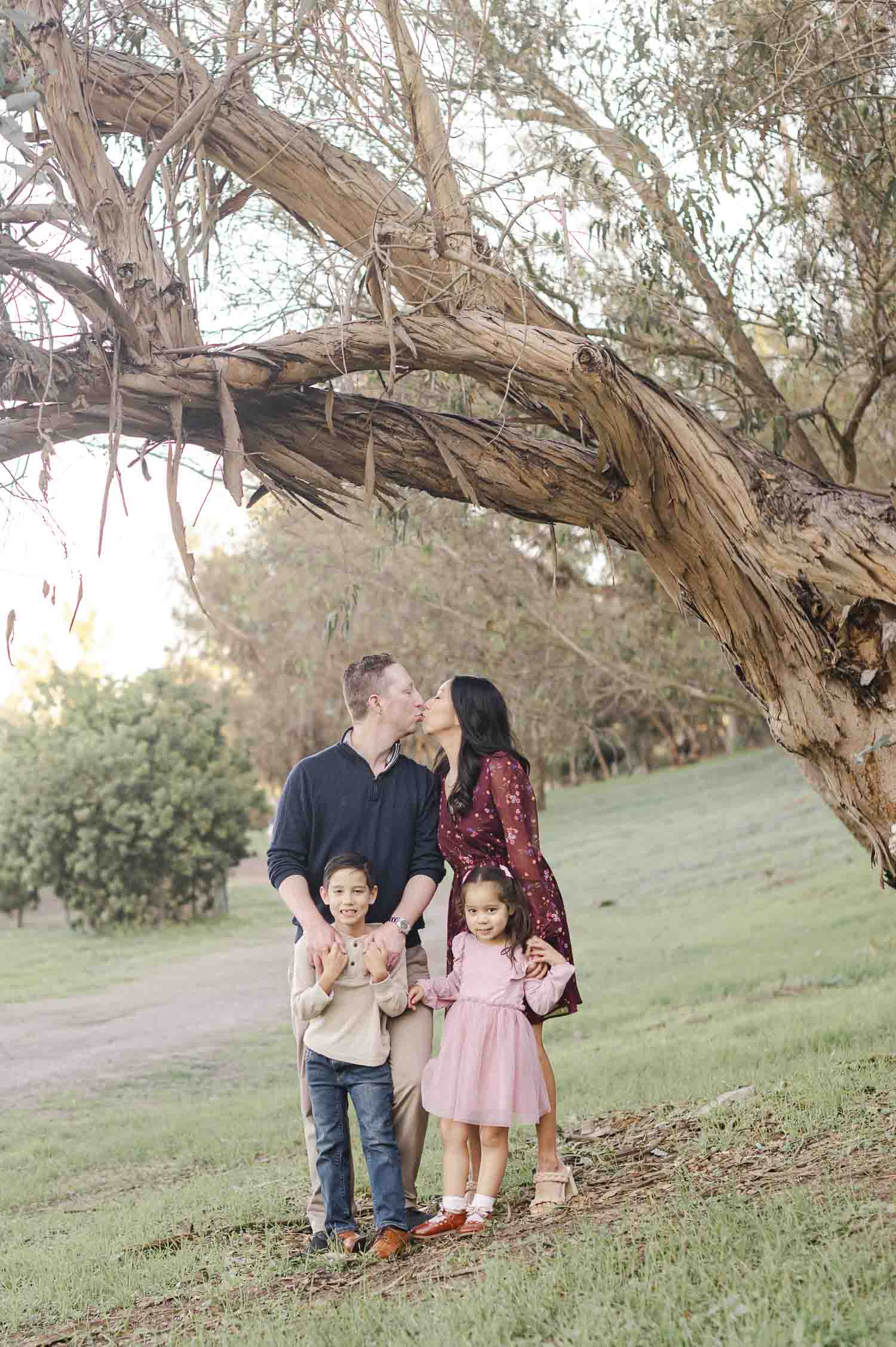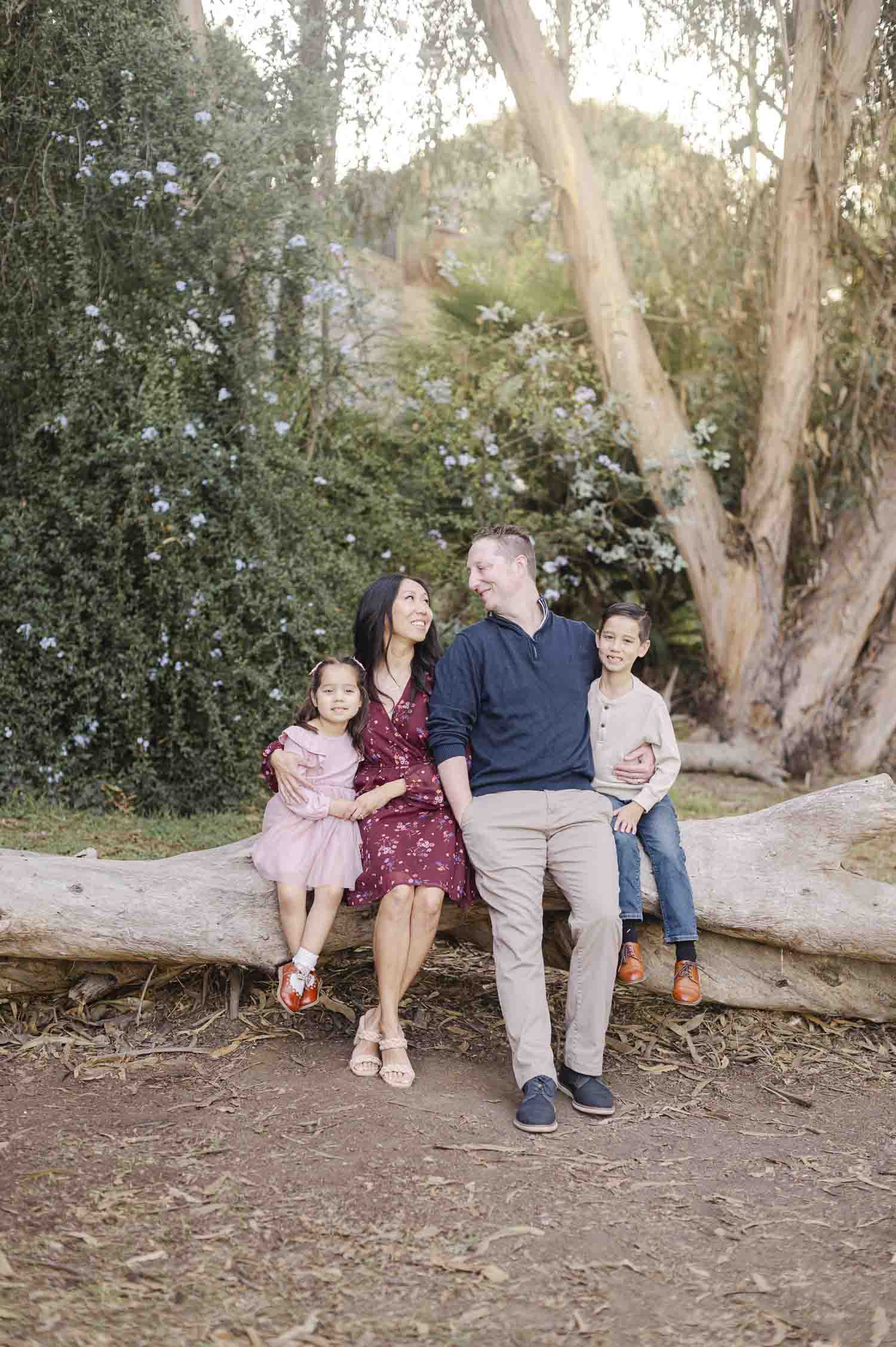 We met at Gum Grove in Long Beach, CA, which is one of my favorite tucked-away wooded glen trails. It’s quiet, beautiful, and has an almost storybook feel with tall trees and that golden evening light. I highly recommend this location to any families looking for a natural, woodsy vibe here in Southern California — it photographs like a dream, all year long.